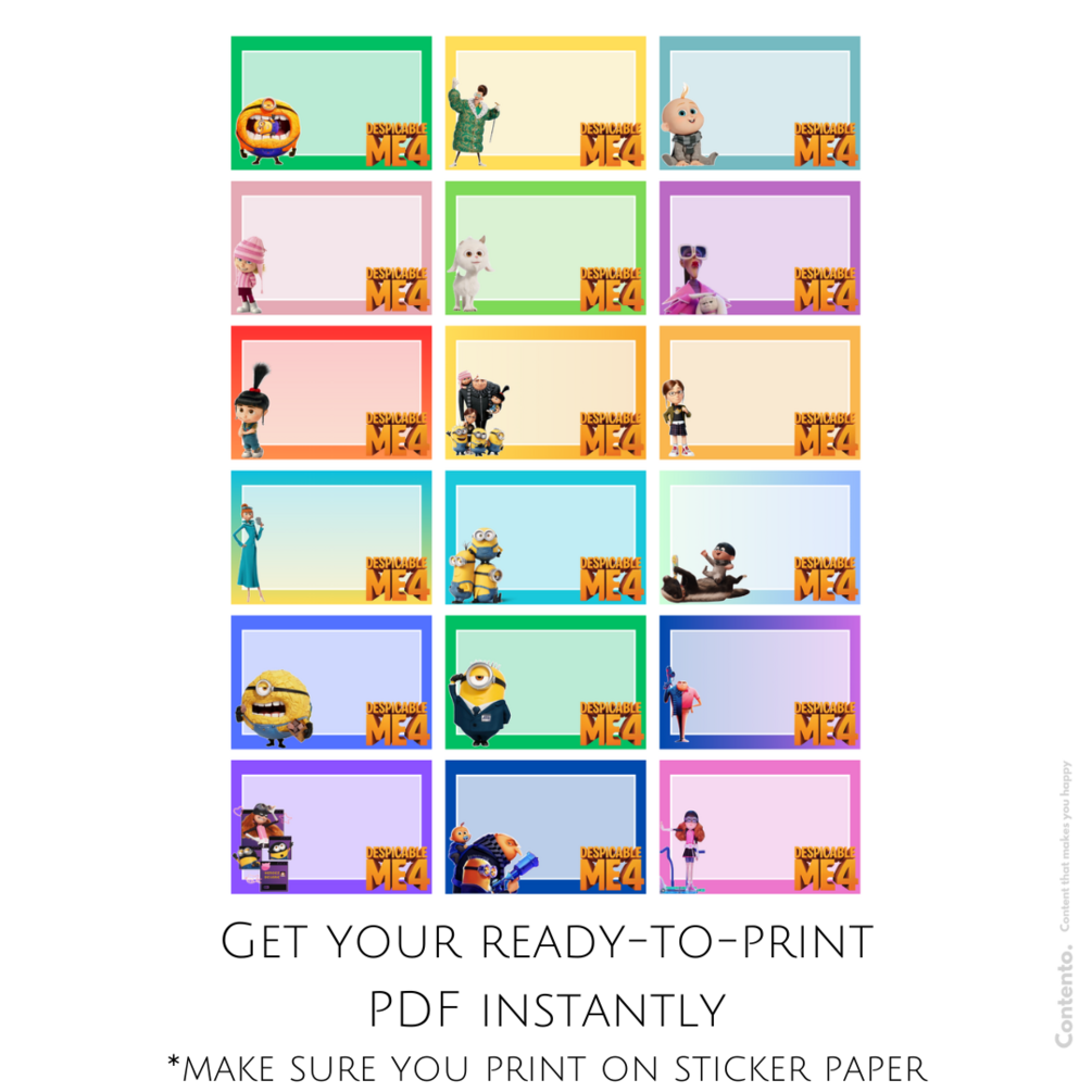 šØ 18 Unique Designs: Our PDF is packed with 18 whimsical designs featuring beloved characters from Despicable Me 4! No duplicatesāeach label is distinct to keep things fresh and exciting for your child.