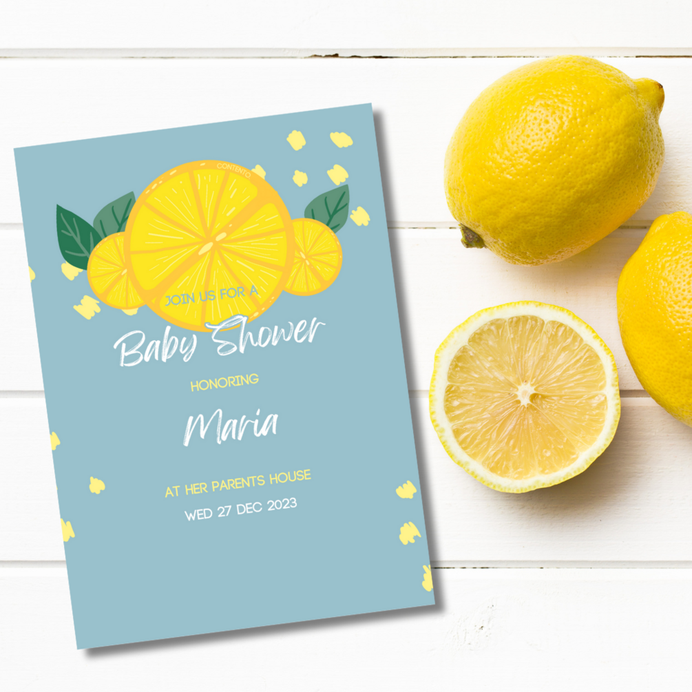 Lemon Vibes Baby Shower Invitation and 9 Games