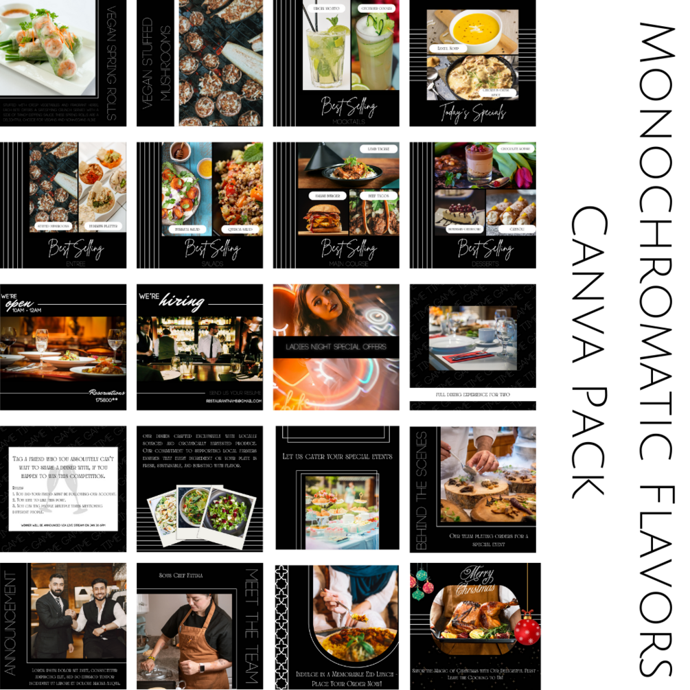 Introducing our captivating Monochromatic Flavors Canva Pack designed exclusively for restaurants!