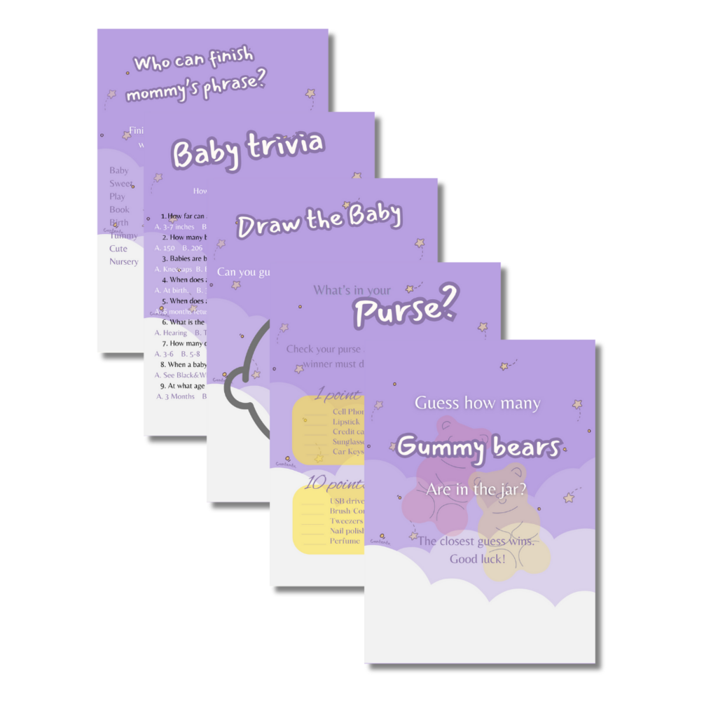 Lavender Dreams Baby Shower Invitation and 9 Games