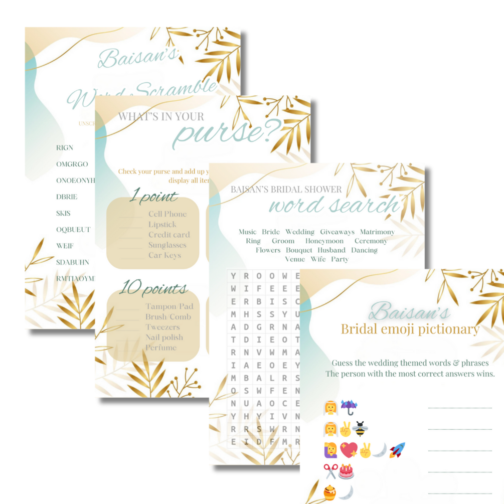 With an exquisite invitation and a selection of seven customizable games to print, this package promises a truly enchanting and unforgettable bridal shower experience for everyone involved.
