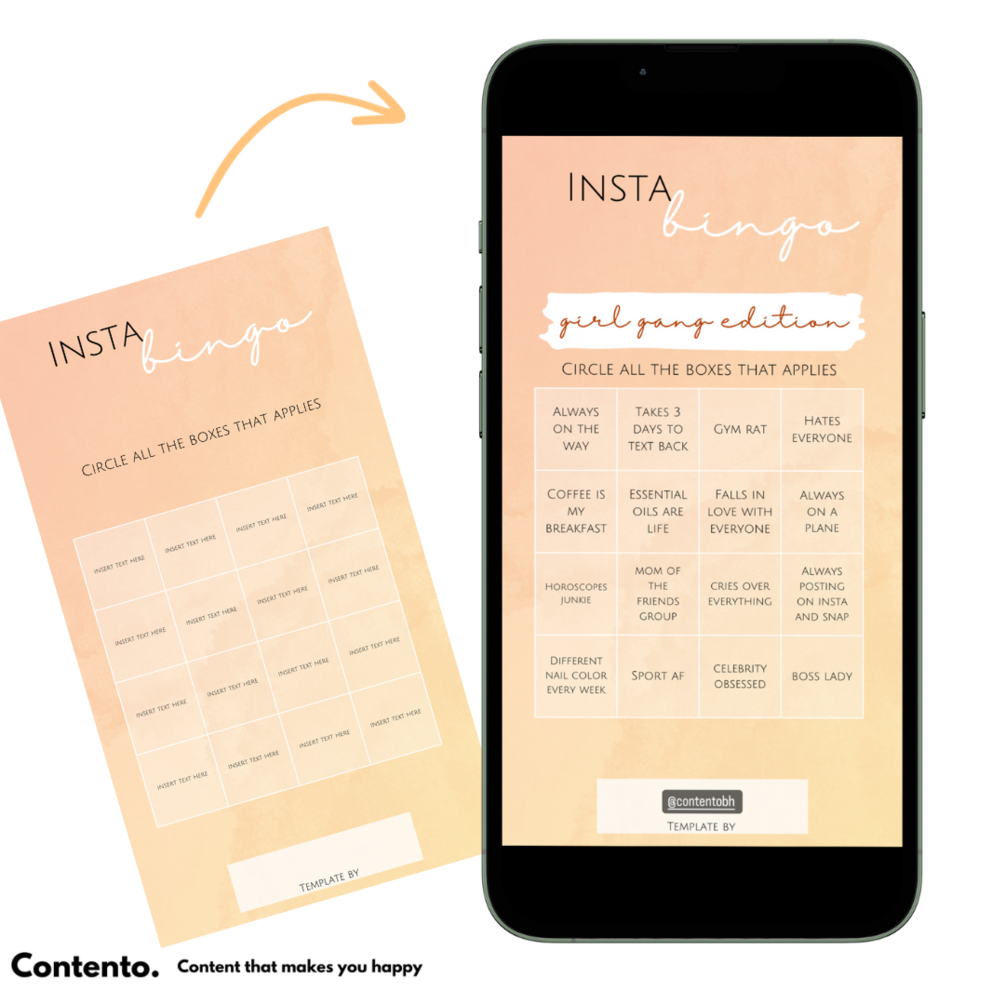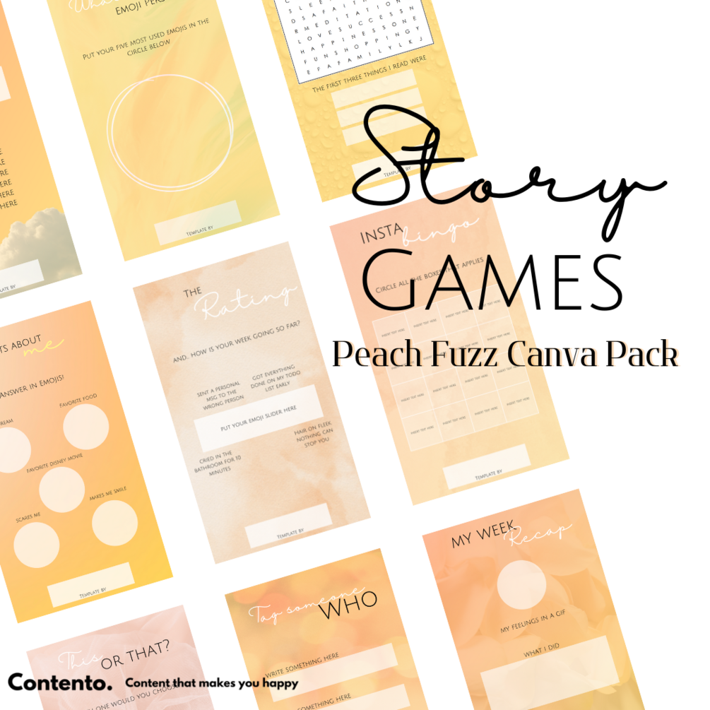 Purchase our templates and make them uniquely yours! Explore a variety of instastory games, all in captivating shades of peach, including Insta Bingo, What's Your Emoji Personality, Send Me a Number, and more. Get ready to increase your followers' engagement with our customizable and irresistible templates!