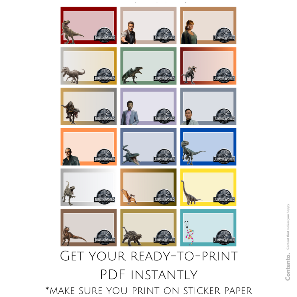 šŸŽØ 18 Unique Designs: Our PDF is packed with 18 whimsical designs featuring beloved characters from Jurassic World! No duplicates—each label is distinct to keep things fresh and exciting for your child.